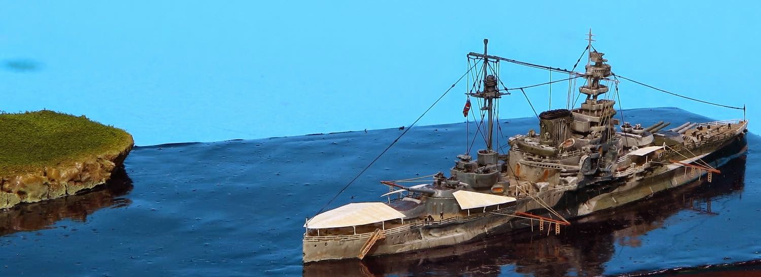 1/1250 Neptune HMS Riyal Sovereign painted and detailed to be used in a small dio.Next to it HMS Malaya